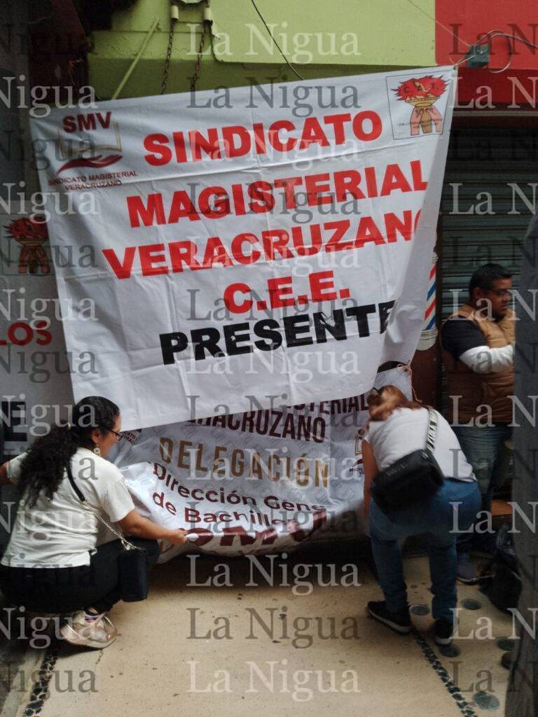 Xalapa, Ver.- Desde las siete de la mañana de este día del lunes decenas de integrantes del Sindicato Magisterial Veracruzano ( SMV), tomaron las oficinas de la Dirección General de Bachilleres (DGB), ubicadas en el interior del Pasaje Revolución entre las calles Clavijero y Revolución de esta ciudad de Xalapa, el motivo es de que no están de acuerdo que de una manera u otra quieren imponer como director de la escuela mixta ” Ricardo Flores Magón “, ubicada en la avenida Adolfo Ruiz Cortines de esta ciudad de Xalapa, a Carlos Castañeda Wong, ya que “es un misógino que trata mal a las mujeres, como fue el caso de una nuestra compañera, Claudia Adriana Soriano Burgos, gritándole adelante de los compañeros de su trabajo, lo quiere imponer el sindicato independiente de trabajadores de la educación de Veracruz SITEV, por lo tanto le solicitamos a la directora general de la DGB, que no permita que un misógino este al frente de este plantel educativo” así lo manifestó,. Martín Antonio Gabriel secretario de seguridad social del comité ejecutivo estatal del sindicato magisterial Veracruzano ( SMV).
