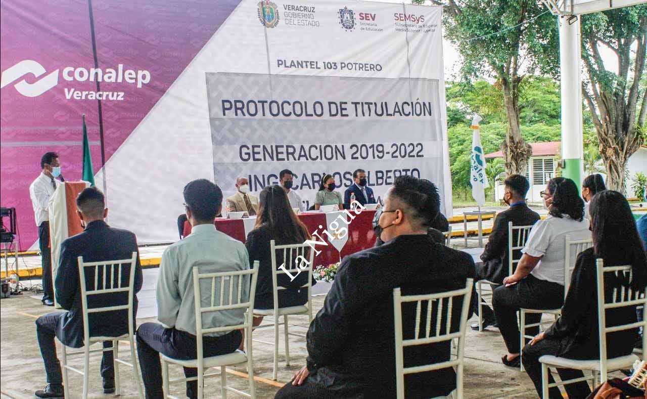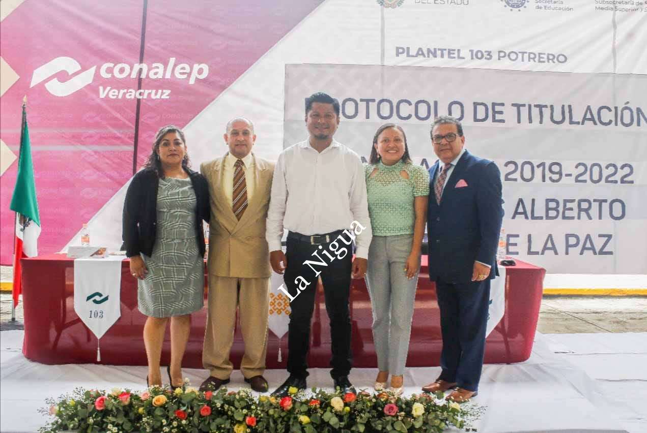 Atoyac.- Con un mensaje de apoyo para que continúen estudiando una carrera universitaria y a la par analicen la posibilidad de emprender un negocio, el alcalde de Atoyac, Carlos Alberto Ventura de la Paz, se convirtió en el padrino de los y las jóvenes de la generación 2019-2022 del Conalep 103 de Potrero Nuevo.