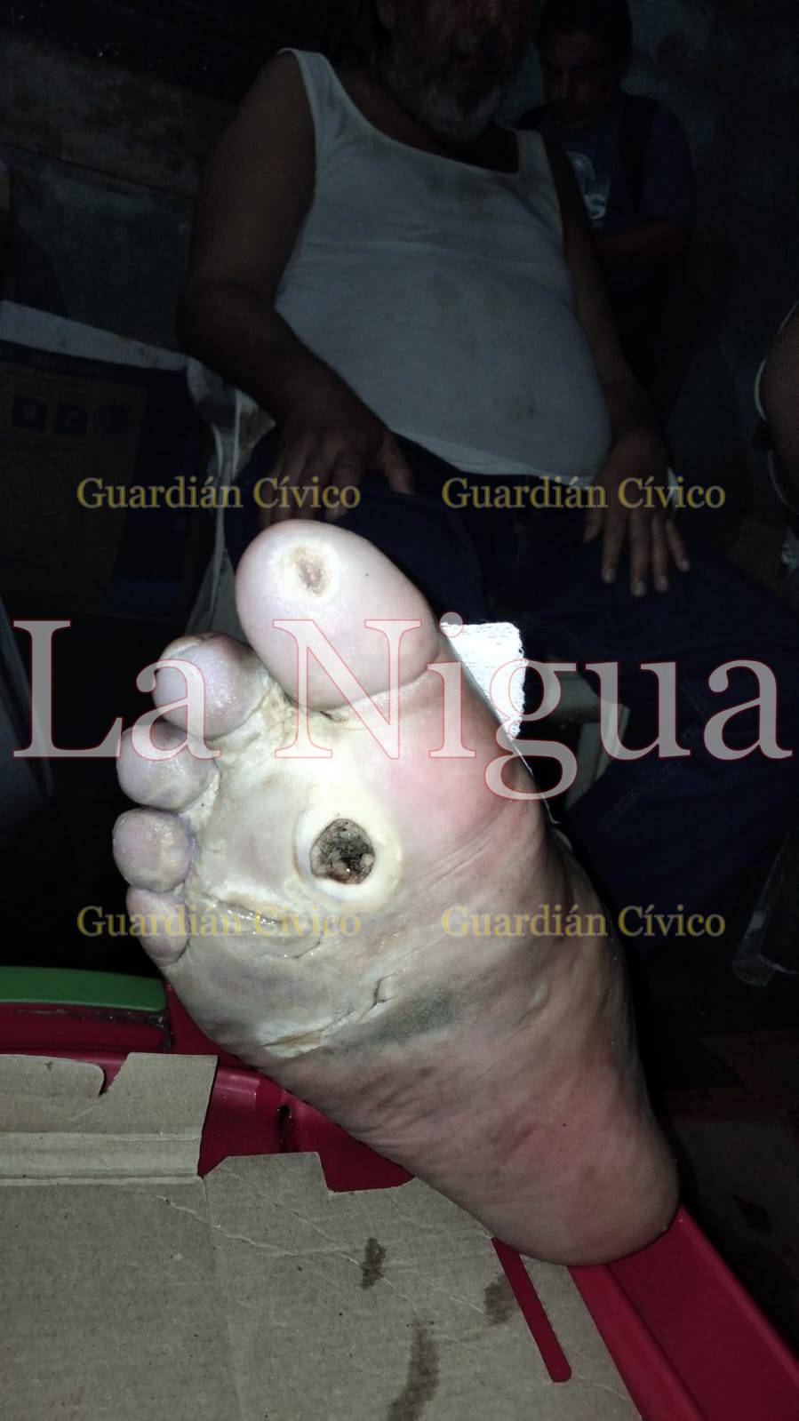 Debido a la crítica condición que llegó al nosocomio, fue internado de emergencia, los galenos y enfermeras le aplicaron antibióticos, suero y se realizó limpieza al pie, pero el diagnóstico fue tajante; hay que amputar el pie o posiblemente la pierna.