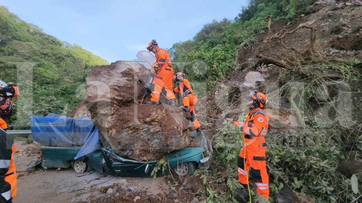 El incidente ocurrió en el kilómetro 47 de la carretera que va de Palín, Escuintla, hacia Santa María de Jesús, Sacatepéquez. Una enorme roca cayó sobre la camioneta en la que viajaban, tras un derrumbe originado por el enjambre sísmico que ha sacudido a la región en los últimos días.