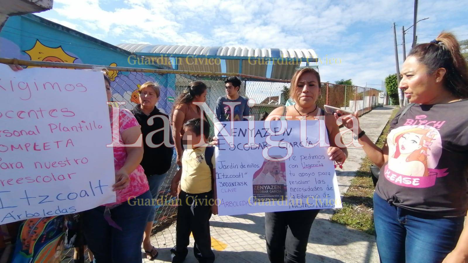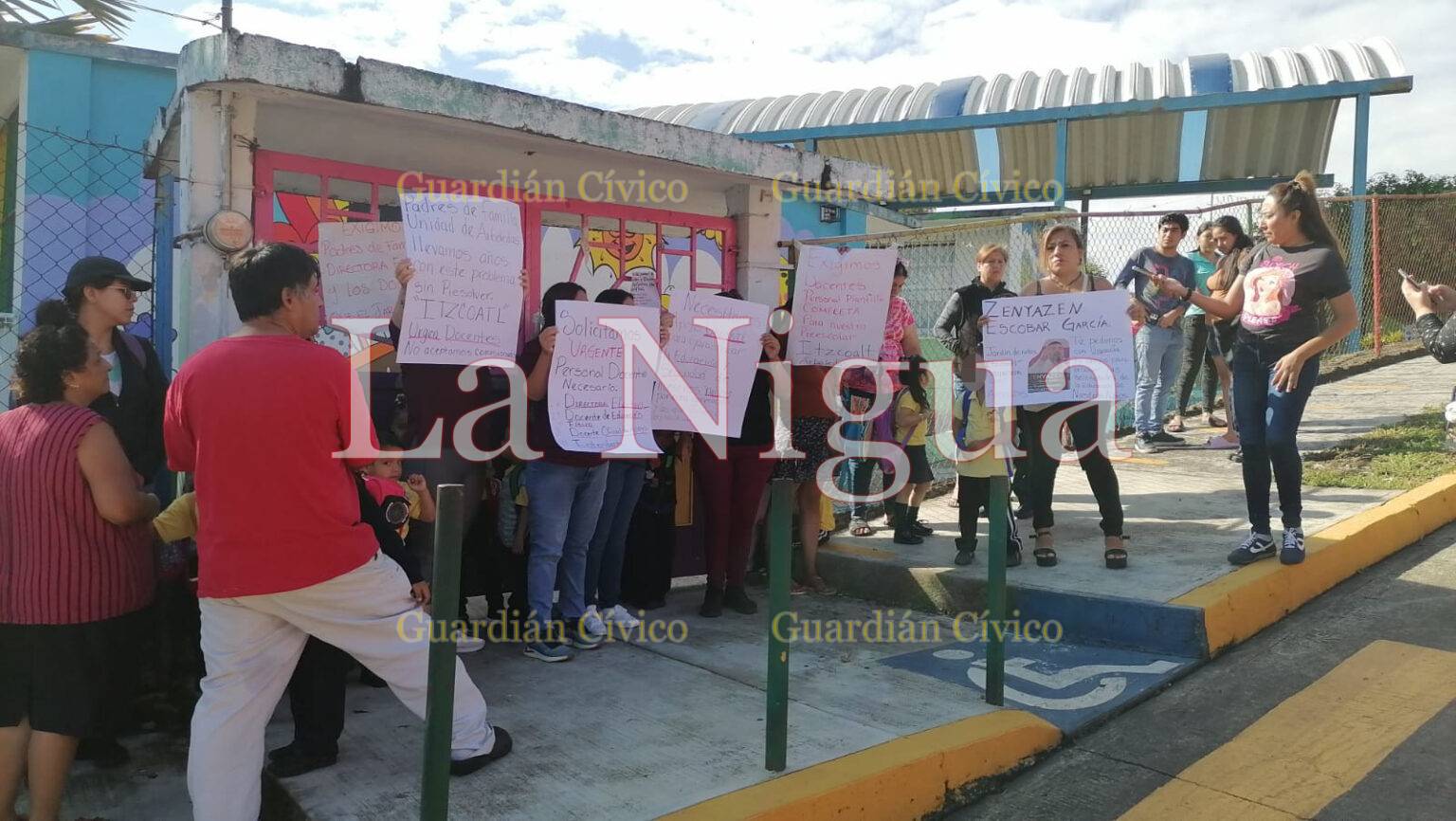Córdoba, Ver.- Padres de familia del preescolar Itzcoatl, tomaron este miércoles las instalaciones debido a que a la fecha les hace falta un director, un docente de educación física, un docente de apoyo y un intendente, sin embargo hasta el momento no han recibido un respuesta positiva por parte de la SEV.