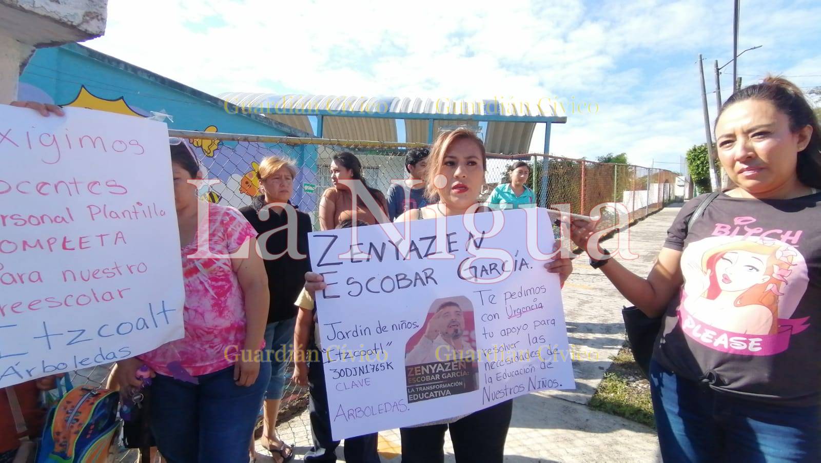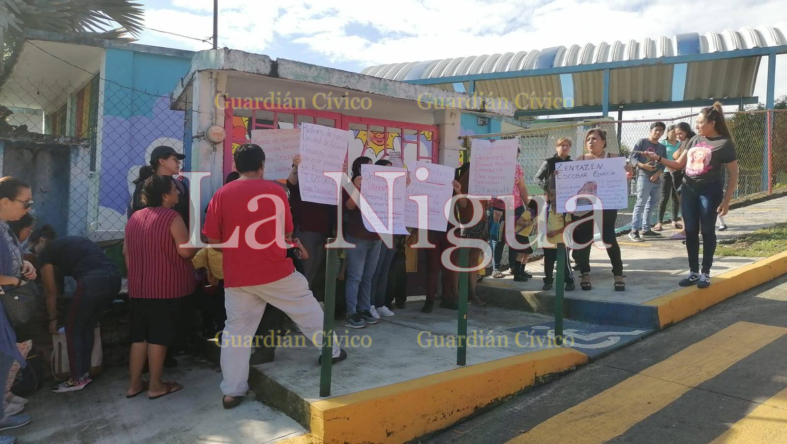 Desde las 08:55 horas, los padres arribaron junto con sus hijos al preescolar ubicado en la calle 2 y avenida 8 de la colonia Arboledas y no dejaron entrar a nadie.