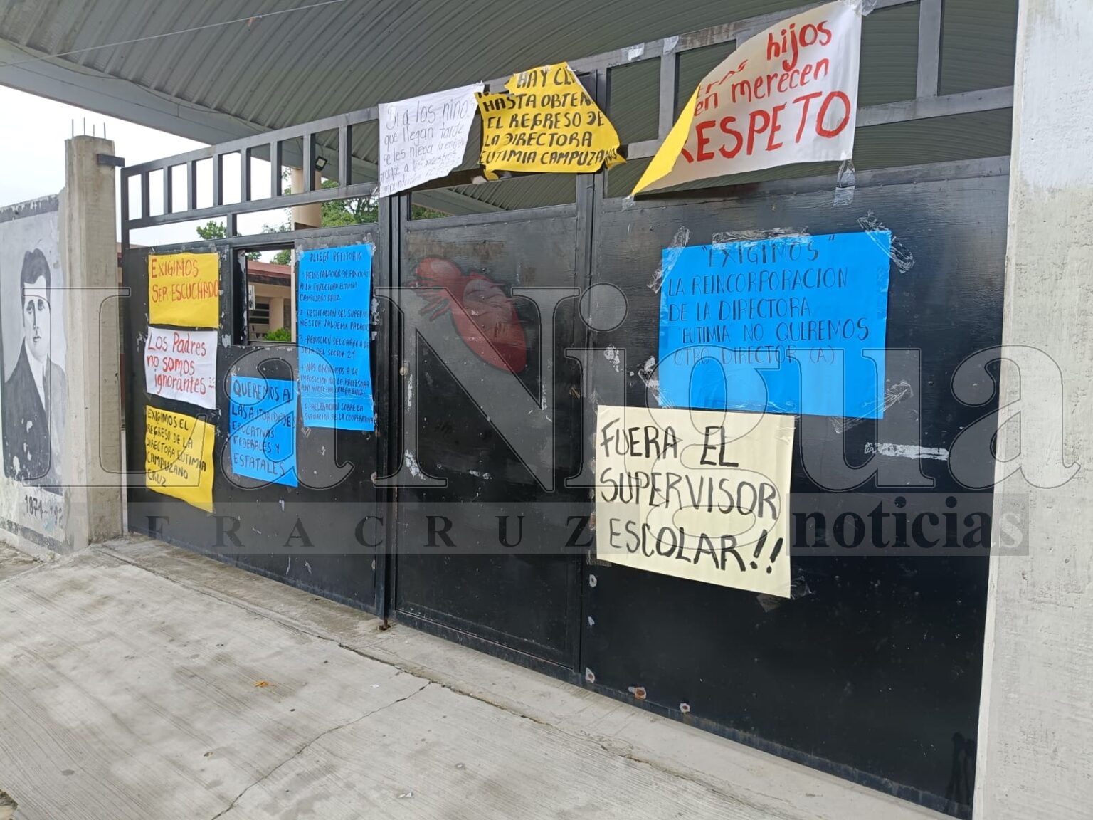 Ante la negativa de las autoridades de la Secretaria de Educación de Veracruz, de regresar a la directora, el día de hoy, tomaron las instalaciones de la escuela y piden el dialogo con un funcionario regional de la dependencia.