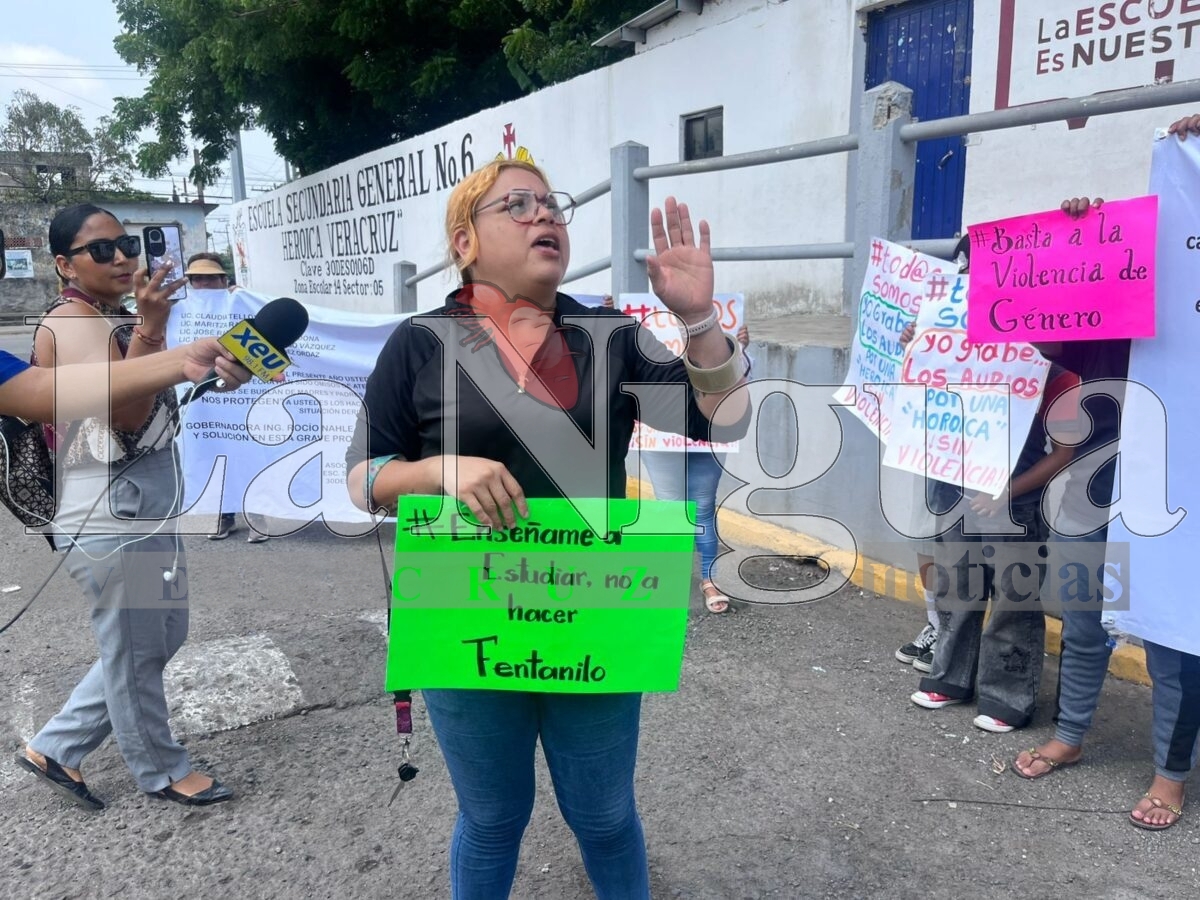 Veracruz, Ver.- Ante el hartazgo de que las autoridades educativas hagan oídos sordos por la situación que se vive en la Secundaria Federal Número 6 “Heroica Veracruz” por temas de acoso sexual hacia las alumnas, madres y padres de familia salieron a manifestarse frente a las instalaciones.