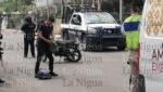 El accidente se registró luego de que el conductor de una camioneta, al salir de un taller e incorporarse a la avenida aparentemente no extremó la precaución necesaria, provocando que en ese momento se impactara la pareja hasta terminar lesionados en el pavimento.