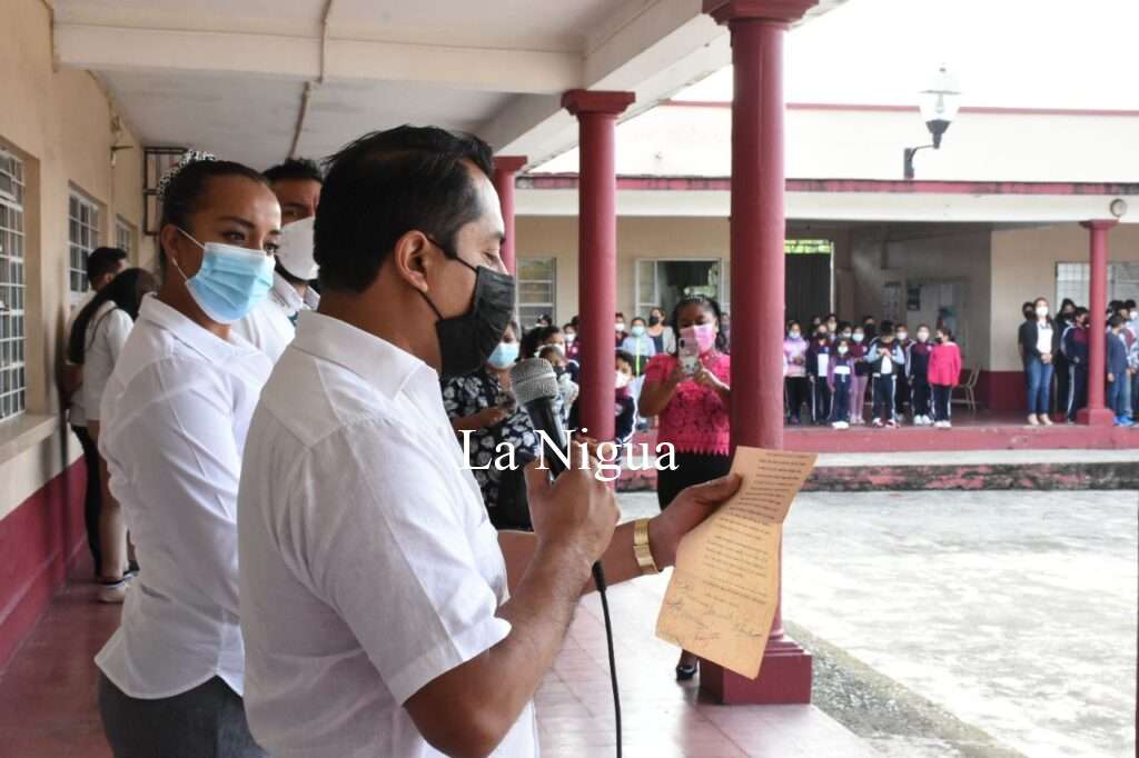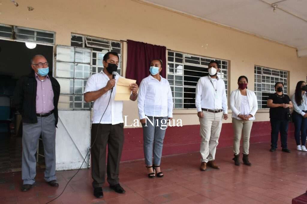 La mañana de este lunes y ante la presencia de alumnos, sociedad de padres de familia, familiares y ex alumnos de la primera generación de esta escuela, el alcalde Gerardo Rosales Victoria junto con la síndica única Elisabeth Navarro Ginez y el secretario del Ayuntamiento, Osmar Eduardo Martínez Vásquez, se llevó a cabo el acto protocolario sobre esta placa conmemorativa.
