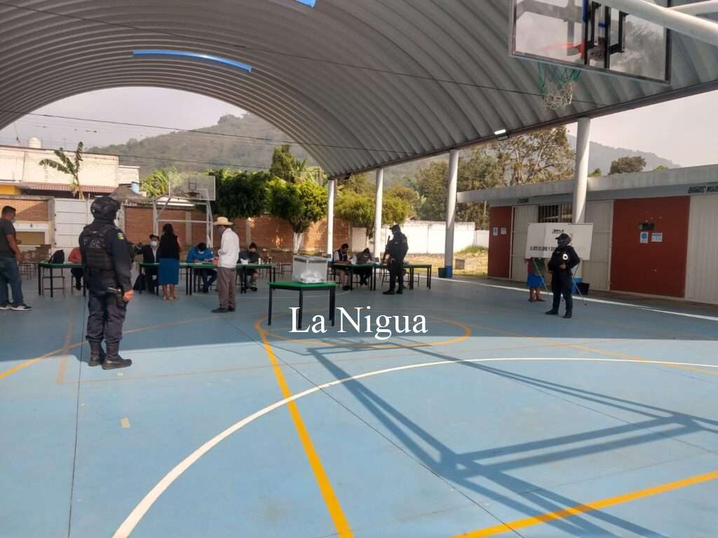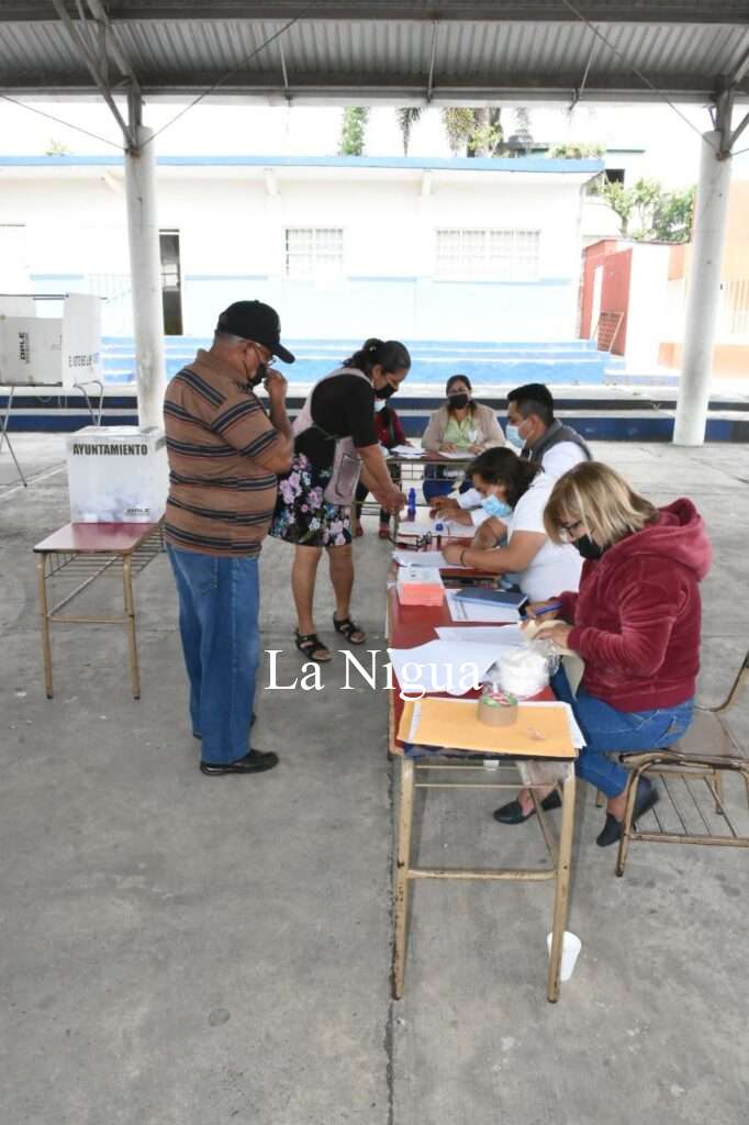 Los ciudadanos cuidan las medidas sanitarias y por otra parte elementos de la Policía Municipal se mantienen en constantes recorridos para brindar las condiciones de seguridad en estos comicios.