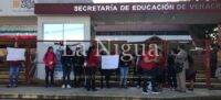 Los Padres de familia, solicitan al titular de esta dependencia, que ya les mandé a la docentes, los manifestantes se colocaron en las diferentes entradas de estás oficinas para no dejar pasar a ningún trabajador, y portan en sus manos cartulinas.