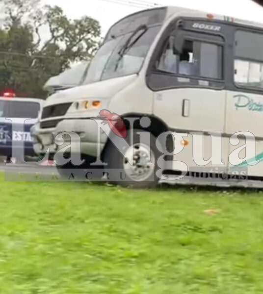 Amatlán, Ver.- Una patrulla de la Secretaría de Seguridad Pública Delegación XXI asignada a la Policía Estatal, terminó con daños materiales ya que durante la mañana de este sábado se impactó contra un autobús de pasajeros de la línea plateados al momento de que las unidades circulaban sobre la carretera federal Córdoba Veracruz a la altura de la comunidad Venta Parada.