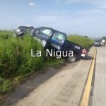 Según testigos al llegar al kilómetro 1, se impactó contra un vehículo tipo pickup de la Policía Federal. Luego de la colisión ambas unidades salieron del camino y volcaron en el camellón central, sus tripulantes resultaron con golpes y lesiones en diferentes partes del cuerpo, mientras que la vialidad se vio parcialmente afectada.