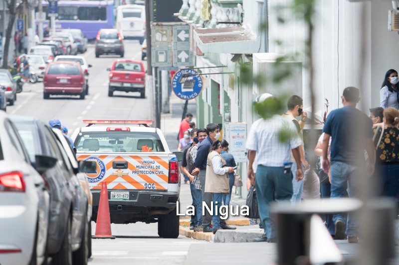 Córdoba, Ver.- Personal de la Unidad Municipal de Protección Civil (UMPC) vigila que las instituciones bancarias de la ciudad cumplan con las recomendaciones sanitarias para prevenir la propagación del COVID-19, como lo son el procurar la sana distancia, uso de cubrebocas y aplicación de alcohol gel entre sus cuentahabientes y colaboradores.