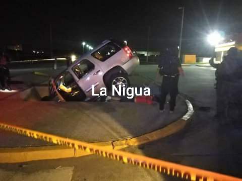 Los delicuebtes enfilaron rumbo al Malecón Costero y cuando transitaban de poniente a oriente, al llegar a la calle Javier Anaya, el conductor de la camioneta marca GMC, tipo Yukon, color arena con placas YLU-929-A, perdió el control y cayó a un canal de aguas negras.