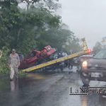 [vc_row][vc_column][vc_column_text]AGUA DULCE, VER.La mañana de este sábado se registró una aparatosa volcadura en la carretera Agua Dulce-El Burro, donde una persona perdió la vida tras salirse del vehículo y quedar colgando entre un árbol.