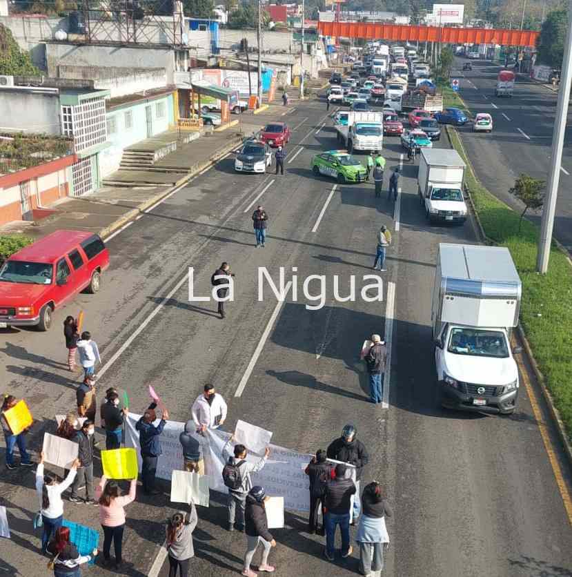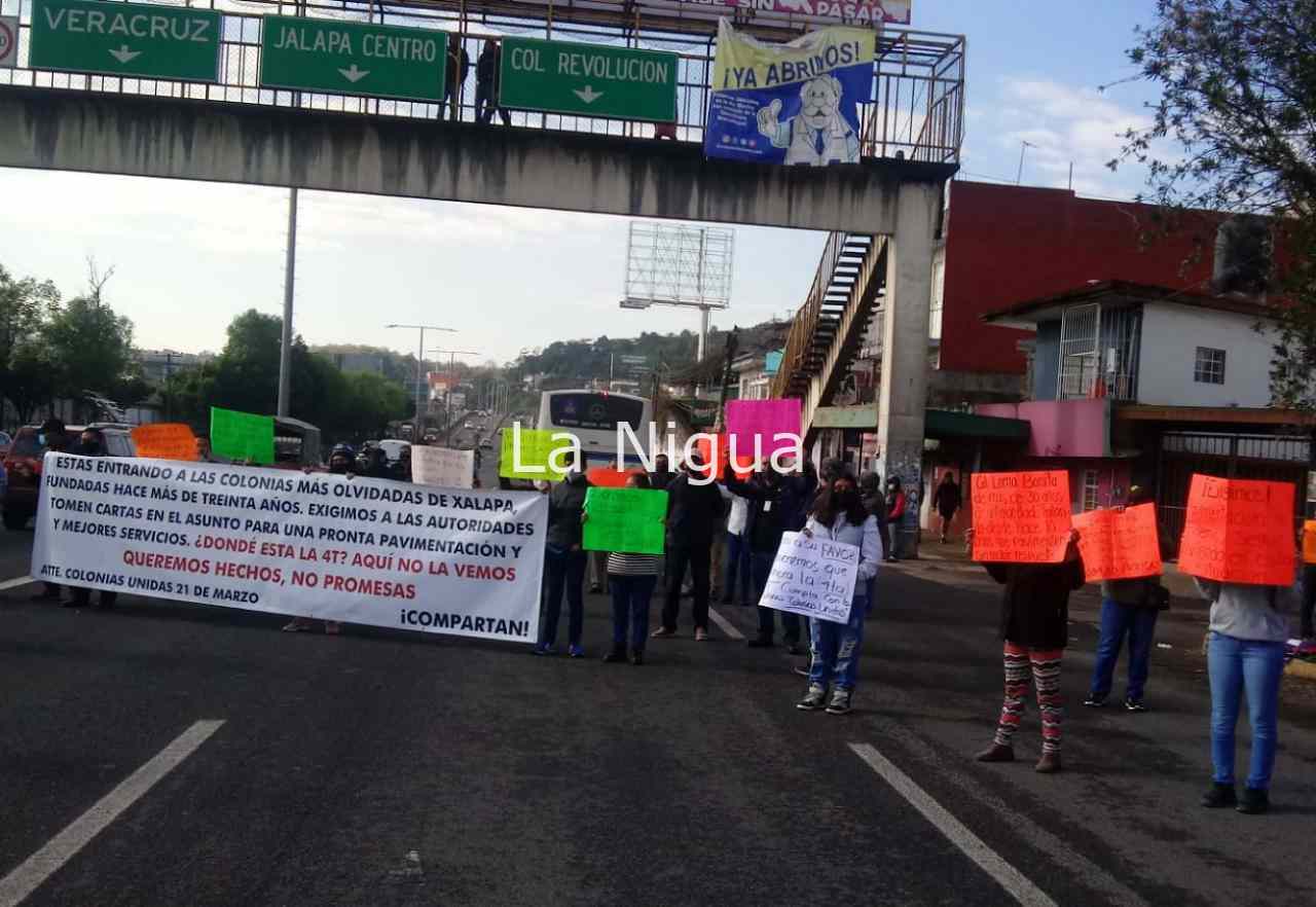 Xalapa, Ver.- Decenas de ciudadanos y que pertenecen a Colonias Unidas 21 de marzo de esta ciudad de Xalapa, bloquearon los carriles del boluverd Xalapa-Banderilla a la altura de la 21 de Marzo, con dirección a la ciudad de México, solicitando que sean incluidos en el presupuesto de obras de este año 2022 por parte del Ayuntamiento de Xalapa, solicitan el pavimento de varias calles, así también la construcción del un ducto pluvial ya que en tiempos de lluvias sus casas se ven afectadas así lo manifestó u a de las personas afectadas, Miriam Montano Obregón.