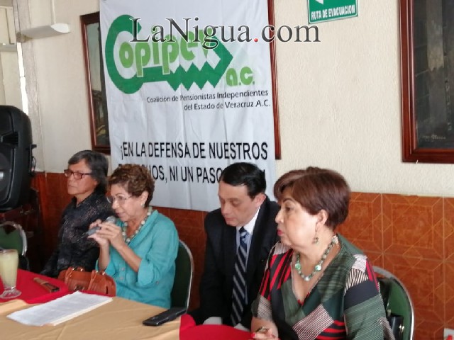 Xalapa, Ver.- Integrantes de la Coalición de Pensionistas Independientes del Estado de Veracruz ( COPIPEV), ofrecieron una conferencia de prensa este martes, “Es indispensable hacer un llamado puntual y enérgico a quienes desde el pasado 3 septiembre de 2019 se han hecho cargo de la fiscalía general del estado, Verónica Hernández Giadáns, para que tenga presentes que la institución Ministerio Público tiene como plazo hasta el 27 de octubre próximo para determinar y en su caso necesidad acción penal en relación con la carpeta de investigación 245/ 2016 iniciado con motivo de la denuncia que presentamos hace 3 años en contra de quienes permitieron el saqueo del instituto de pensiones del estado de Veracruz” así lo manifestó la maestra, Adriana Chávez Tejeda, presidenta de la COPIPEV.