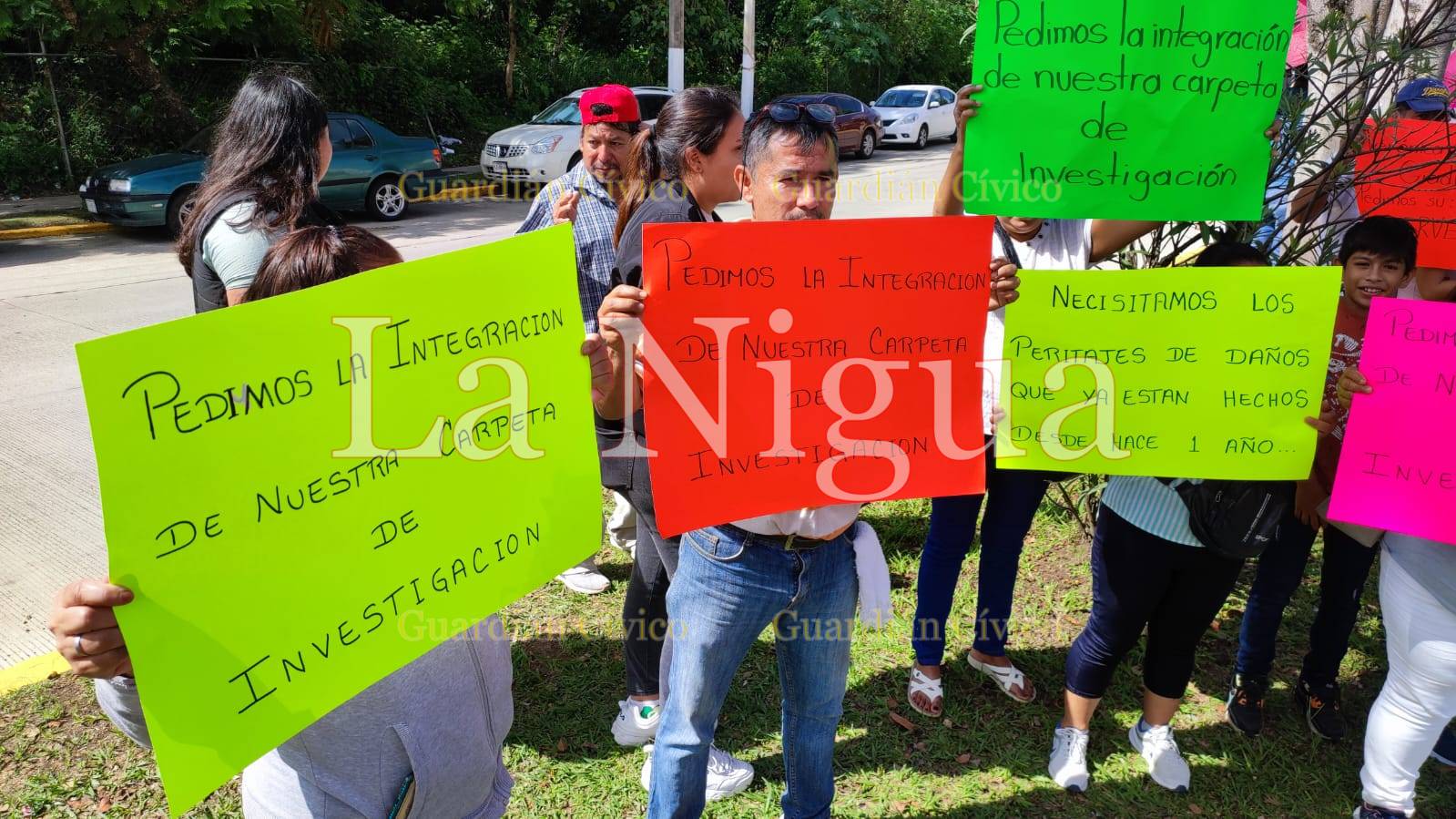 Xalapa, Ver.- Este día de viernes decenas de Habitantes de las comunidades de Santa Ana, La Defensa, Santander y Villa del Mar del municipio de Alto Lucero, se manifestaron en las oficinas de la Fiscalía General del Estado (FGE), ubicadas en circuito Guízar y Valencia número 707 de la colonia reserva territorial de esta ciudad de Xalapa, para exigir a las autoridades la integración de la carpeta de investigación por los daños ocasionados por la Constructora Mota Engil México, S. A. de C. V. a sus viviendas durante los trabajos realizados en la construcción de la autopista Cardel-Poza Rica, así lo manifestó una de las afectadas, Ericka Montes, dijo que en una primera estimación de daños sumaban 98 las viviendas dañadas por los explosivos que ocupó la empresa para la apertura de carretera, de estas 98 viviendas ya fueron indemnizados sus habitantes.