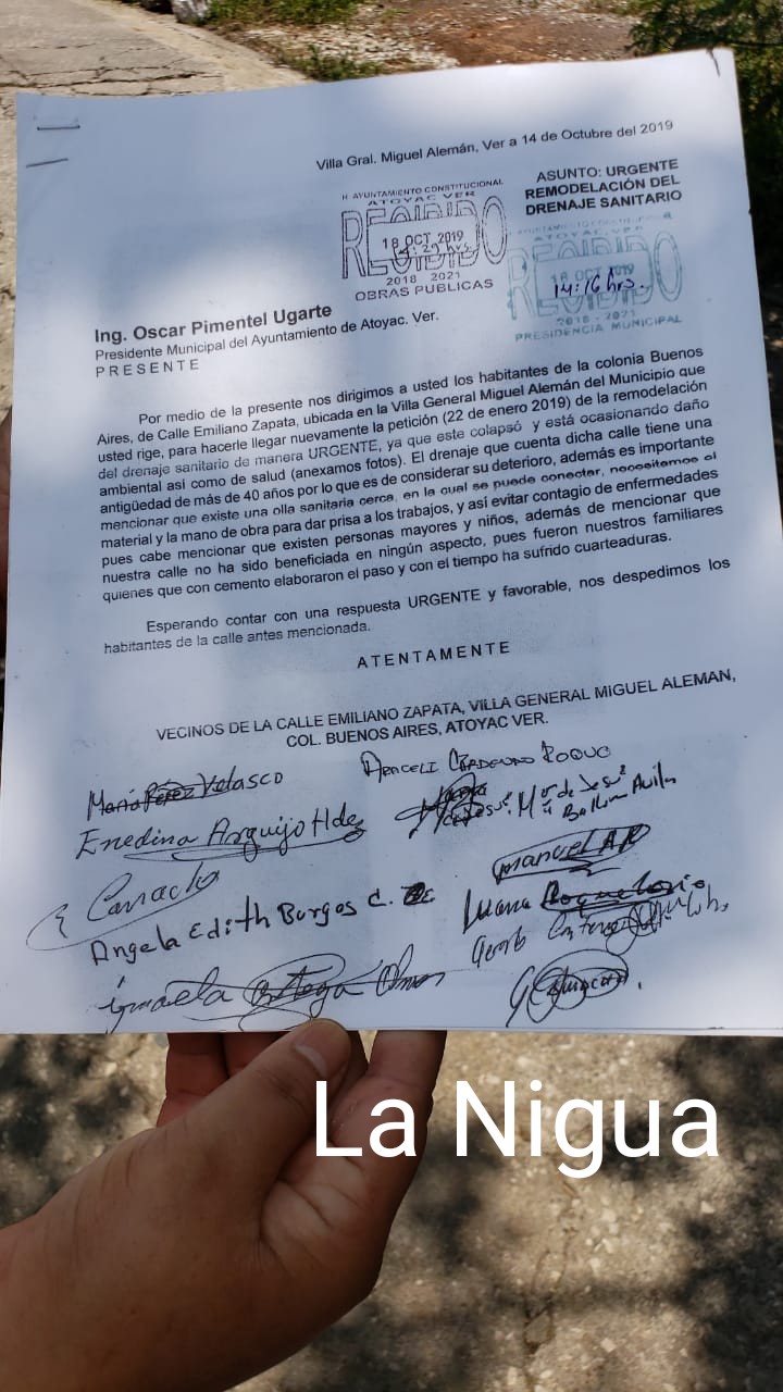 Potrero nuevo, Ver- habitantes de la colonia Buenos Aires piden apoyo al presidente municipal del ayuntamiento de Atoyac Oscar Pimentel Ugalde
