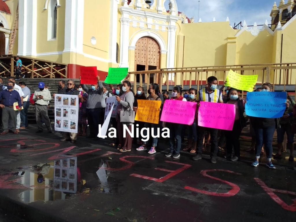 Xalapa, Ver.- Un grupo de docentes de diferentes niveles educativos de Preescolar indígena, primaria indígena, primaria federal, secundaria técnica y Telesecundaria del Valle de Uxpanapa se manifestan en la Plaza Lerdo, piden que se les pague a 248 docentes las quincenas 16 y 17, “El Secretario de Educación de Veracruz (SEV) Zenyazen Escobar García, no hace nada para que se nos paguen nuestras quincenas y lo único que nos dicen en la Secretaría que es problema de la Federación”.