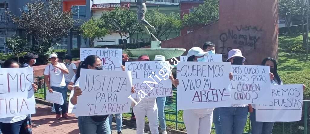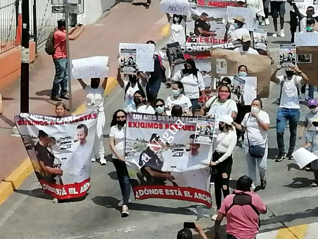 Ya que el día de mañana jueves 30 de junio se cumple un mes de su desaparición, los manifestantes portaban cartulinas en sus manos con varias consignas ” Queremos vivo Al Archy” ” El nos cuido a nosotros pero, a Él ¿quién lo cuido? Y vestían ropa totalmente blanca.