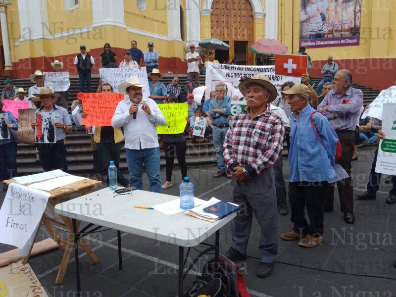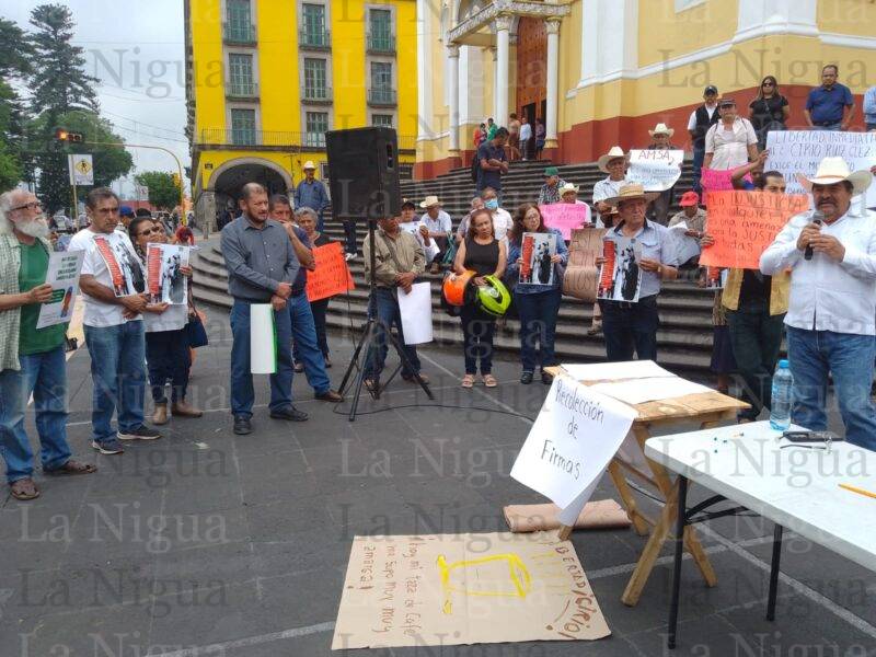 La mañana del lunes en la plaza Lerdo decenas de caficultores de las cinco zonas cafetaleras del estado Veracruz se manifestaron, para exigir la liberación inmediata de sus compañeros cafetaleros detenidos el pasado viernes por elementos de la policía ministerial, debido a una demanda arbitraria por parte de la empresa Agroindustrias Unidas ( AMSA), ubicada en el municipio de Ixhuatlán del Café, las personas que fueron detenidas ese viernes son Ninervo N Cirio N, Abraham N Crisanto N ,así como también la periodista Viridiana N, todos ellos en este momento se encuentran presos en el cereso de la Toma ubicado en el municipio de Amatlán de los Reyes, se les acusa que provocaron un incendio el 24 de enero del año 22 en el beneficio de café de esta empresa AMSA, ubicado en el municipio de Ixhuatlán del Café, cabe recordar que miles de productores esa noche se encontraban protestando afuera de esta empresa debido a la reducción de los precios del kilo de café cereza por parte de esta empresa de 17 pesos a 13 y 12 pesos, hay que recordar que está empresa transnacional es la segunda mayor compradora de café a nivel mundial.