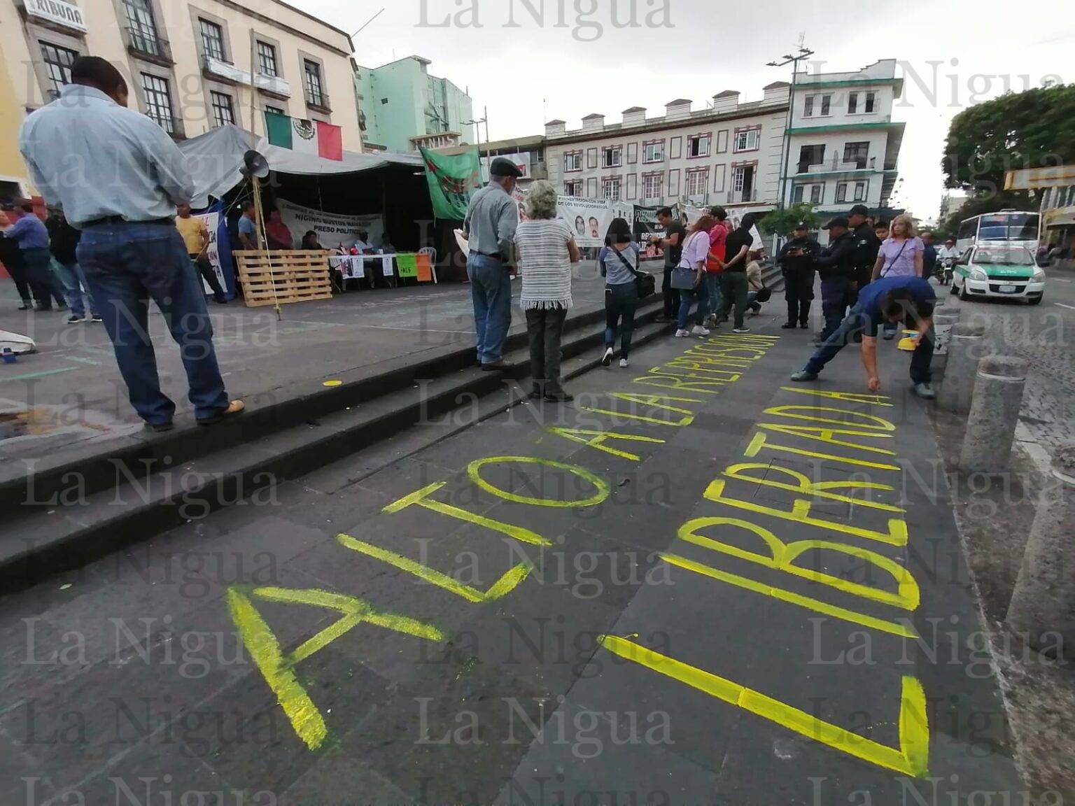 Xalapa, Ver.- La mañana de sábado , familias y amigos de las personas que fueron detenidas el día de ayer, se manifestaron en la plaza Lerdo, piden que liberen de inmediato a los representantes cafetaleros por una demanda de la empres Agroindustria de México (AMSA), desde la Coordinadora Nacional de organizaciones Cafetaleras (CNOC, A.C.) “demandamos la libertad inmediata de Minervo Cantor Peña, Abraham Cabal Pulido, Crisanto Valiente Miramon, Cirio Ruiz González y Viridiana Bretón (Expresidenta Mpal. de Ixhuatlán del Café,