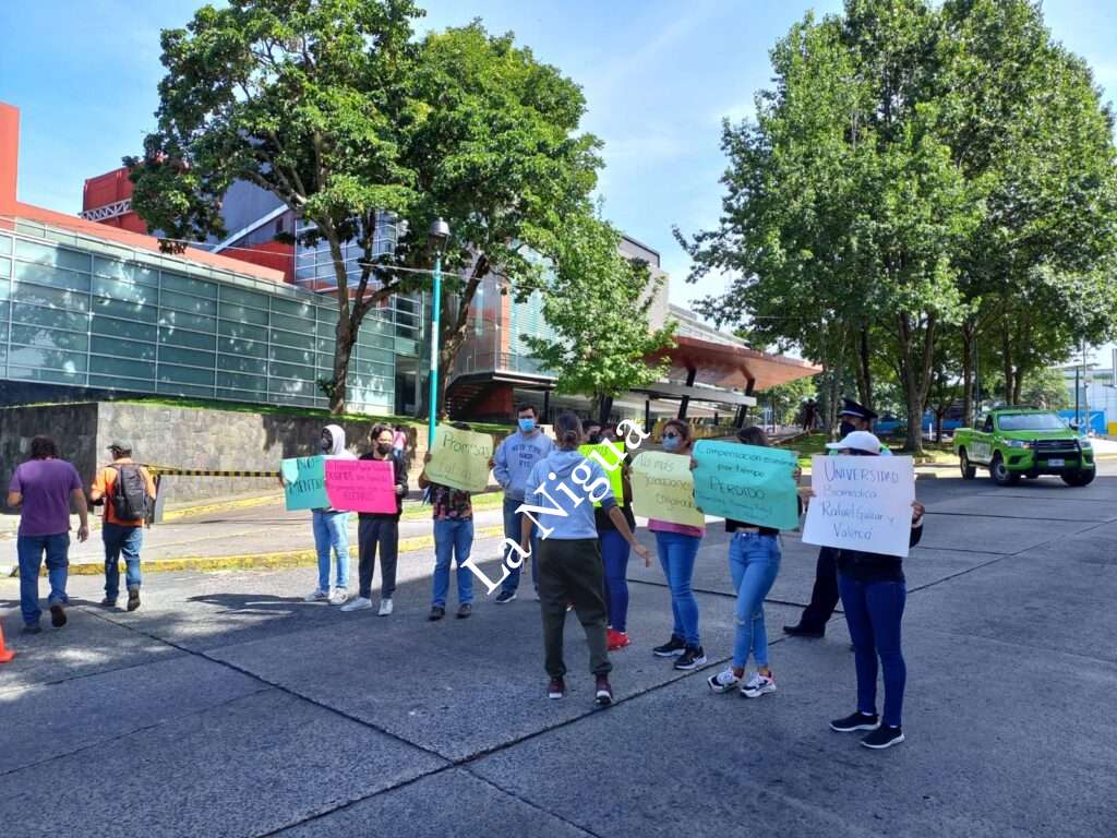 Xalapa, Ver.- Un grupo de estudiantes de la universidad Biomedica ” Rafael Guizar y Valencia”, ubicada en la calle Ángel Garrido de la colonia Represa del Carmen de esta ciudad de Xalapa, se están manifestando en la entrada principal del plantel educativo y la calle de Ignacio de la Llave, indican que no hay transparencia en los trámites y que se ven afectados 25 alumnos, pedimos que los trámites se realicen de manera más adecuada y rápida posible en las carreras de nutrición y enfermería, “solo nos dan largsa por parte de los directivos encargados de la universidad, ya que llevamos más de un año que se nos retienen lo del servicio social, en este momento estamos esperando los convenios con alguna institución como IMSS, ISSSTE y DIF Estatal”, pero no hay convenio, así lo manifestó el estudiante de la carrera de fisio terapia , Cruz Alfredo Morales.