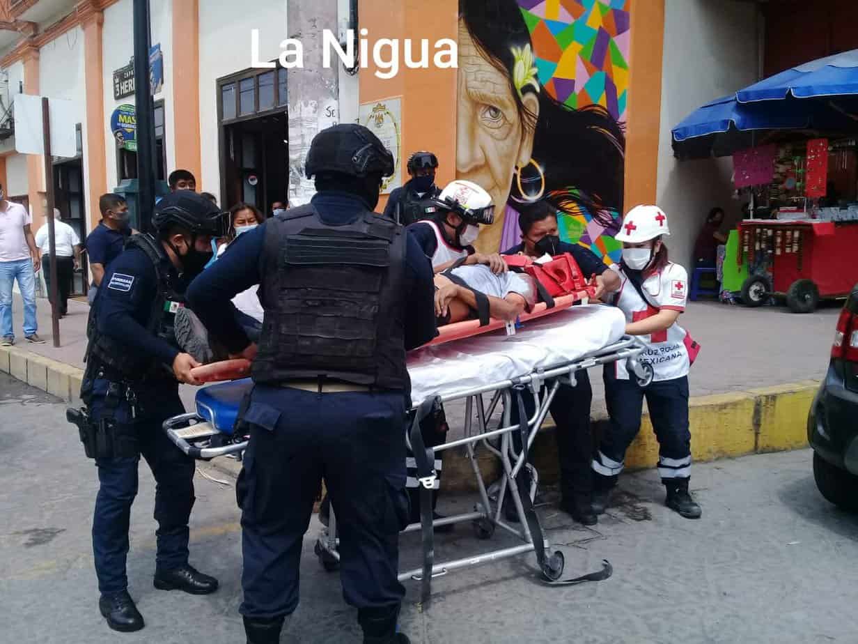Quienes no daban crédito a lo sucedido, ya que solo vieron como un jovencito, caía para terminar sobre la banqueta en la calle Enríquez frente al parque central.