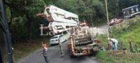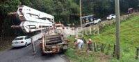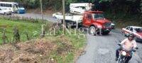 Zongolica, Ver.- Una Plataforma tipo grúa de la Empresa Concretos y Tecnología Aplicada del Centro S.A. DE C.V., con número económico BCO168, se fue a la cuneta en la carretera federal Zongolica – Orizaba a la altura de Los Perales del municipio de Los Reyes, originando un intenso caos vial hacia ambas direcciones.