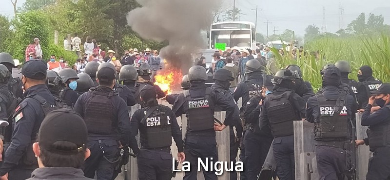 Los manifestantes arribaron a la cabecera municipal a bordo de más de 40 vehículos particulares y tres autobuses, pero sobre la carretera estatal Orizaba-La Perla a la altura de conocido salón social, ya se encontraban antimotines de SSP así como policías municipales de otros municipios.