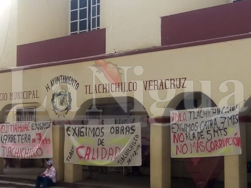 Tlalchichico , Ver.- Desde hace seis días, cientos de pobladores de diversas localidades del municipio de Tlalchichico mantienen tomado el palacio municipal como medida de protesta. Además, han cerrado los accesos que conectan con las localidades vecinas de Zacualpan y Llano del Medio, en demanda de que se amplíe la carretera a 7 metros de ancho debido a las condiciones peligrosas de la vía actual, que solo tiene 5 metros de ancho y presenta numerosas curvas peligrosas.