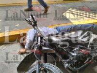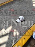 Otro de los dos asaltantes logró llegar al estacionamiento donde tenían una motocicleta Itálika roja, la cual montó queriendo huir pero los refuerzos de SSP le gritaron “alto o disparamos” y al acelerar cayó abatido con la moto encendida.