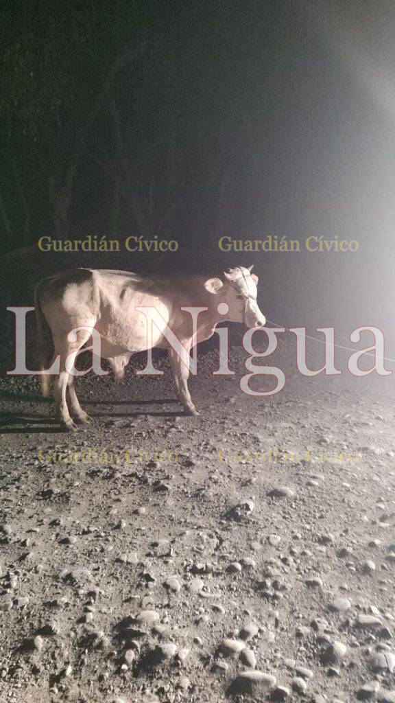 Los delincuentes al percatarse de la patrulla y los uniformados, se dieron a la fuga dejando amarrado el becerro de aproximadamente 359 kilogramos que minutos antes había robado del predio de la señora Cecilia H. C.