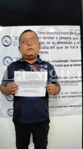 Los detenidos son los policías Leobigildo “N” y Francisco Gerardo “N” quienes están a disposición de la FGR por violación a la ley federal de armas de fuego y explosivos.