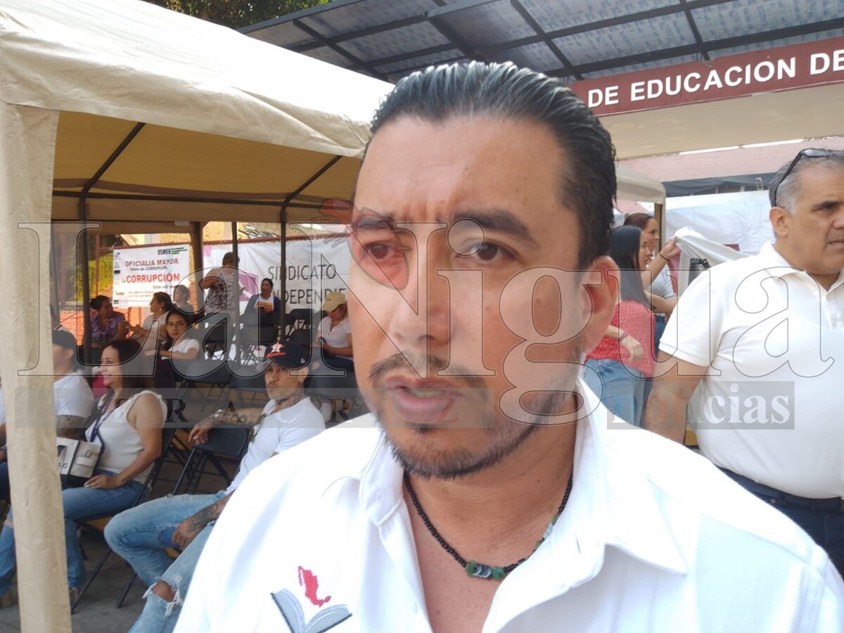 Gerardo Velázquez Mavaret, secretario general del SIMVE, expresó su solidaridad con los otros sindicatos y destacó la importancia de que todas las demandas sindicales sean atendidas por la SEV. Las demandas principales incluyen movimientos de personal en las direcciones mencionadas, cambios de adscripción y techo presupuestal.