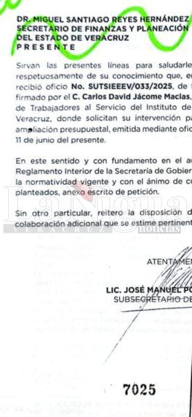 Recordando que la negativa a incorporarlos al IPE, ha sido heredada de administraciones anteriores, “siempre lo justificaban es un tema presupuestal. No obstante, el Secretario General recalca que se ha trabajado Coordinadamente con sus Directivos y han solicitado formalmente una ampliación presupuestal ante te la Secretaria de Finanzas el Ing. Carlos Alfonso Smith Graillet Director General del IEEV, por un monto anual de 5 millones 456 mil pesos que permitiría beneficiar no solo a los actuales 84 trabajadores, sino a los 160 empleados activos del Instituto de Espacios Educativos”.