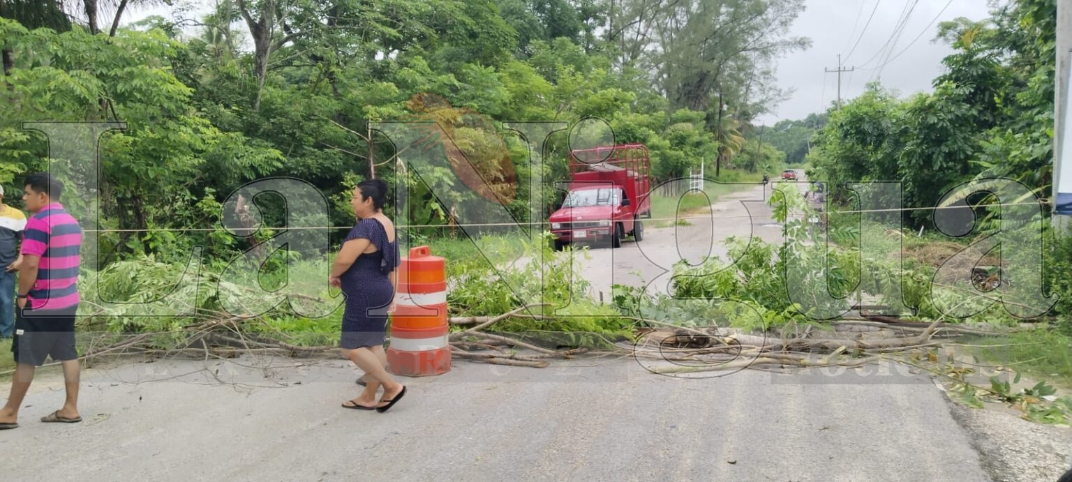 En el lugar conocido como Acalapa, con ramas, palos y mecate, los vecinos no permiten el paso de vehículos y camiones oficiales y piden la presencia de autoridades de los municipios de Las Choapas y Moloacan para mediar y presionar ante CFE.