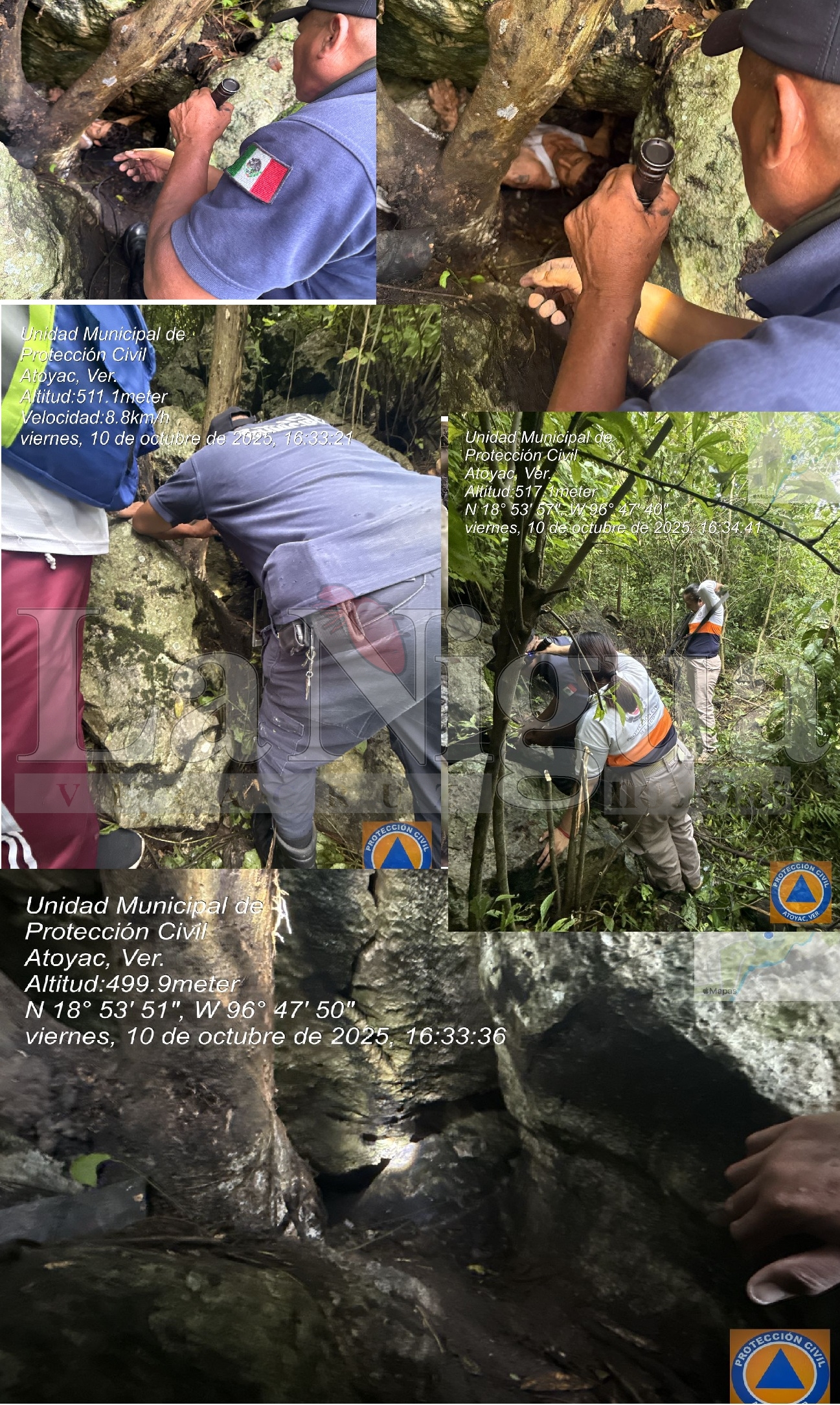 La Angostura, Atoyac, Ver.- Tres sujetos que se metieron a tomar y convivir dentro de un sótano, se enfrentaron al problema que este comenzó a drenar agua, porl o que dos decidieron salir con dificultades, ya que es fácil entrar entre las placas de roca en descenso, pero para salir por ascenso es más difícil.