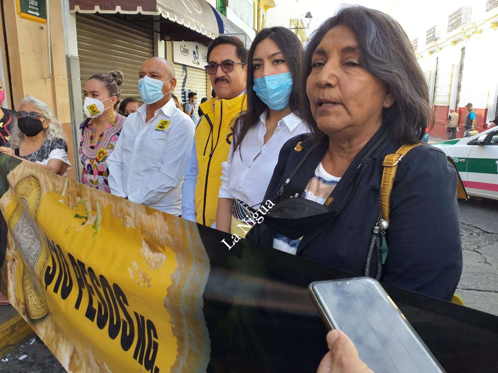 A esta manifestación se sumó, Camerino Eleazar Márquez Madrid de la dirección nacional ejecutiva del PRD, señaló, que “esta acción que inició nuestro partido y atraves de nuestro líder nacional José de Jesús Zambrano Grijalva, fuimos a la SHCP a entregar un documento en el cual le solicitamos al secretario que intervenga de manera urgente para dar un subsidio al kilo de la, tortilla ya que en la mayoría de los estados ya llega a 27 y 30 pesos el kilo, por el fenómeno de la inflación, por la la carestía de los granos y los fertilizantes que se encarecido por el conflicto de la guerra de Ucrania, esto a demostrado que nuestro país no es autosuficiente en producción de alimentos, caso concreto del producto maíz, necesitamos cerrar filas productores, consumidores y sobre todo exigirle al gobierno federal invierta para que la producción del campo garantize la soberanía alimentaria, no somos soberanos en producción de maíz, frijol, trigo y otros productos incluidos en arroz, importamos más del 80 por ciento de arroz, necesitamos que los diferentes productores que tengan el apoyo de otros sexenio tenían como, procampo, ayuda a pequeños productores, tenemos muchas regiones del país abandonadas y controladas por los poderes tácticos, si el precio de la tortilla sigue incrementándose puede llegar a rebasar los 30 pesos y eso para muchas familias mexicanas dejarían de comer un producto de la canasta básica que es fundamental para la alimentación de las familias mexicanas”.
