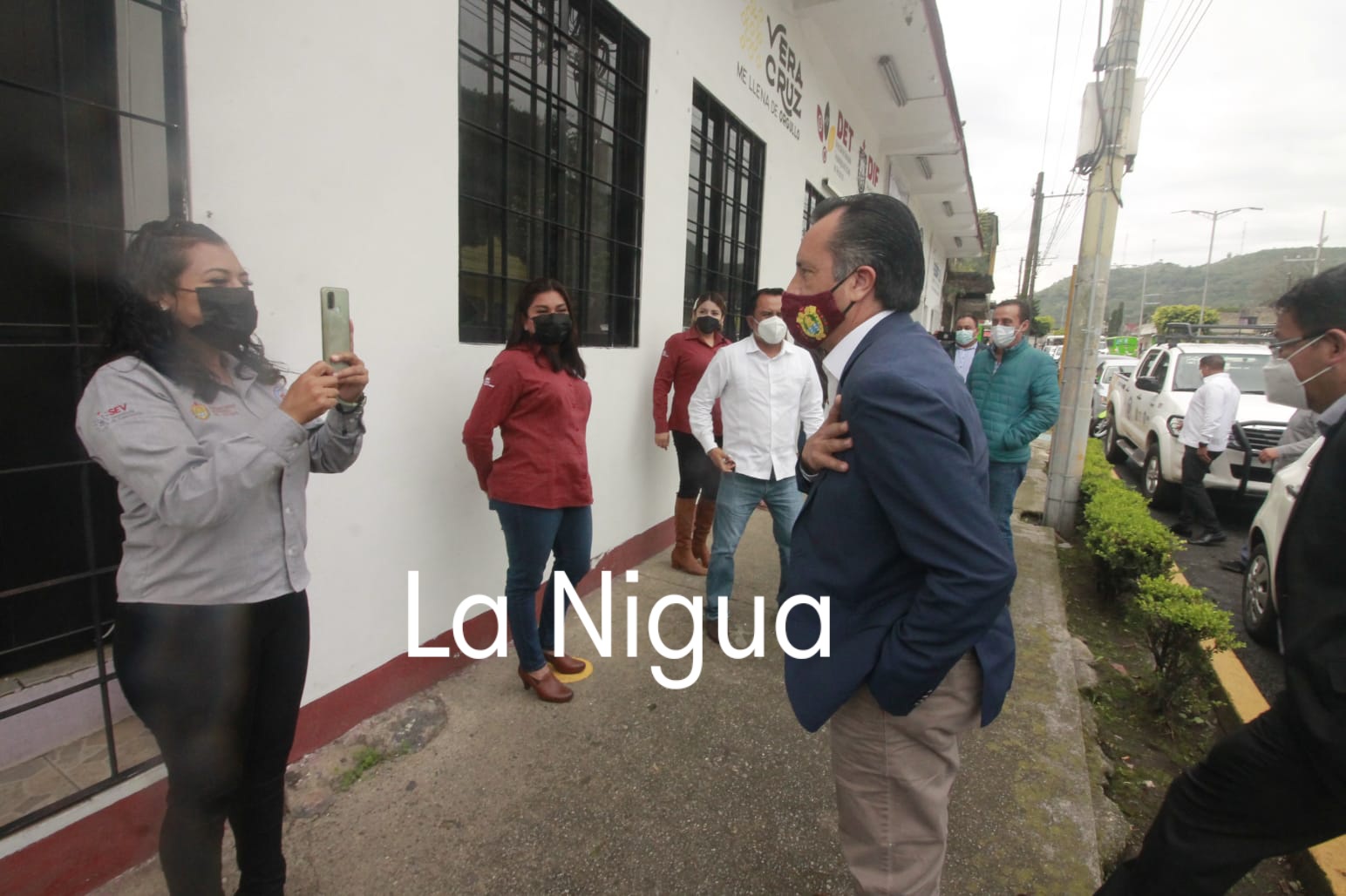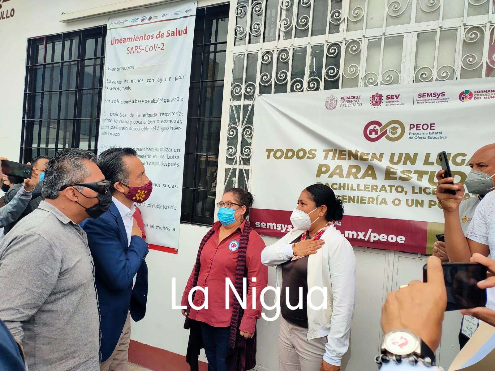 A su llegada el Gobernador no ingreso de inmediato al salón Las Margaritas lugar donde se realiza lleva a cabo la mesa de seguridad, camino hacia las instalaciones de Universidad Politécnica de Huatusco, donde saludo a maestros.