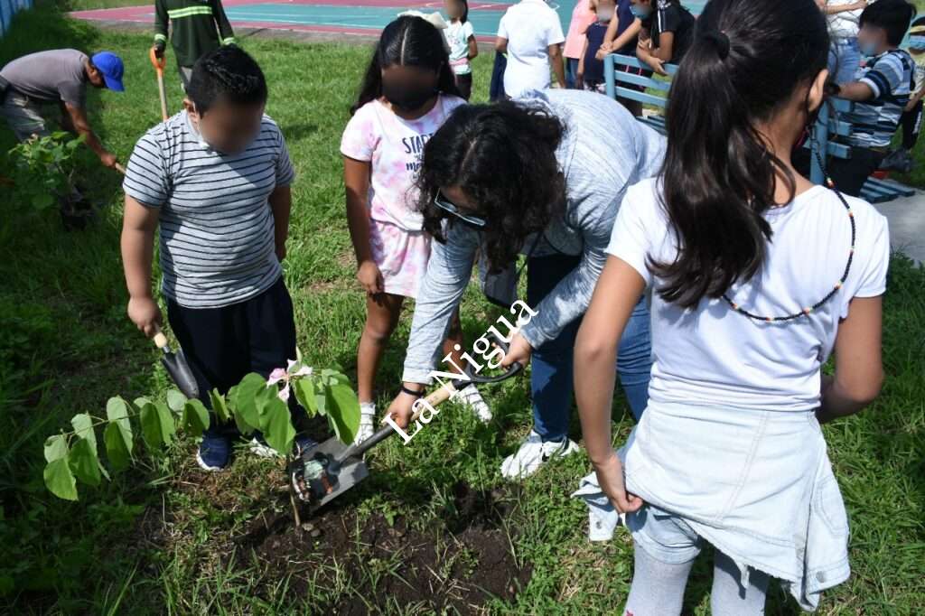 La coordinadora de Ecología y Medio Ambiente, Lizette Miranda Velázquez realizó esta actividad en coordinación con personal de Parques y Jardines quienes realizaron el hoyo en la tierra a fin de llevar a cabo una adecuada plantación.