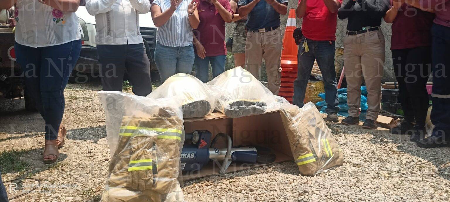 La mañana de este martes 9 de mayo, autoridades locales hicieron entrega de equipo y herramientas a la Dirección de Protección Civil, entre las que se encuentra “la quijada de la vida”.