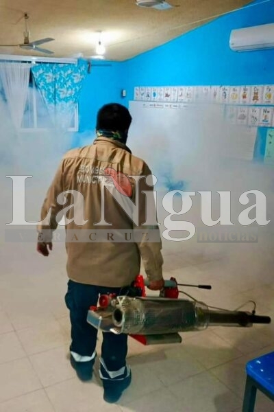 Soledad de Doblado,Ver.- Atendiendo a la solicitud de docentes y padres de familia, el equipo de Protección Civil llevó a cabo trabajos de fumigación en las instalaciones de la escuela ubicada en la Colonia Oaxaca. La acción, que se realizó con el objetivo de prevenir la proliferación de insectos y garantizar un ambiente saludable para los estudiantes, refuerza el compromiso de la comunidad educativa con la seguridad y bienestar de los pequeños.