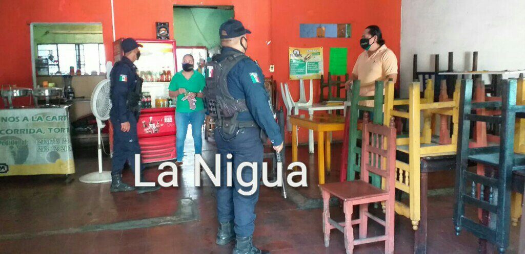 Los elementos de seguridad y PC recorrieron calles, locales y parques para invitar a los lugareños a seguir los protocolos de sanidad, con el uso de cubrebocas, mantener la sana distancia y evitar las aglomeraciones en lugares públicos, como los campos deportivos y parques así como las instalaciones del Seguro Social.