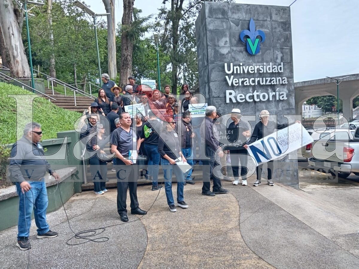 Portando cartulinas y lonas con consignas como “No a la imposición” y “Por una UV autónoma”, los manifestantes denunciaron lo que consideran una violación a la legalidad y a la autonomía universitaria.