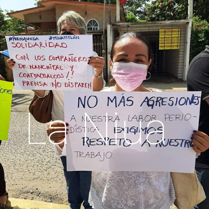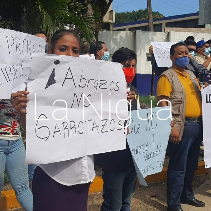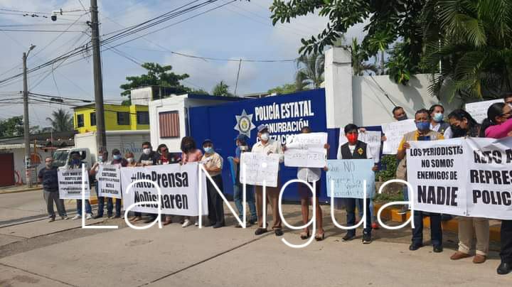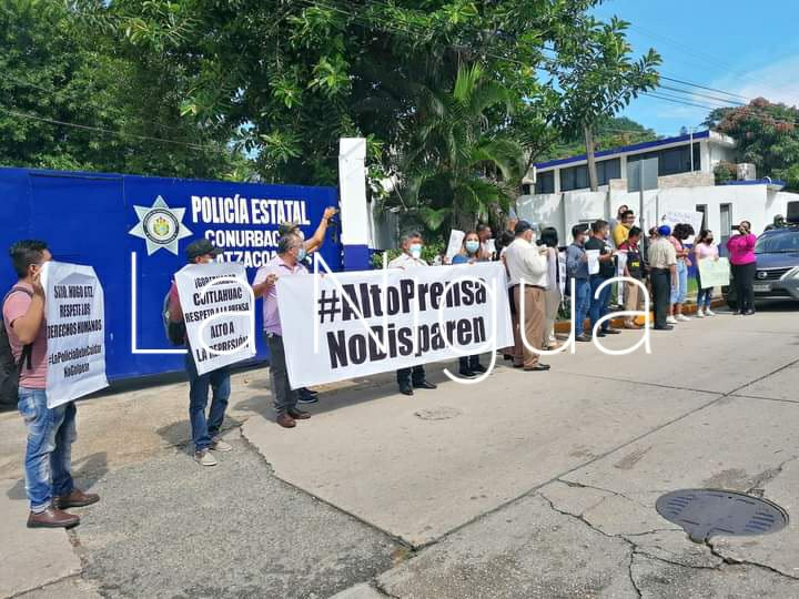 Por la mañana un grupo de periodistas de Coatzacoalcos y Minatitlán protestaron pacíficamente a las afueras del ex penal de Palma Sola donde se encuentra el cuartel de la Secretaria de Seguridad Pública (SSP) para exigir justicia y que cesen los ataques hacia la prensa.