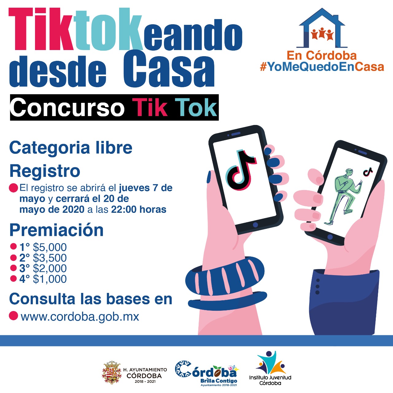Córdoba, Ver.-El Instituto Juventud Córdoba a través de su titular Paulina Cozar Peña, informa que a solo 10 días de lanzada la convocatoria “Tiktokeando desde Casa” , suman 145 vídeos enviados por los ciudadanos. 48 Tik toks han pasado la primer fase al cumplir con el mensaje principal, que es promover el quedarse en casa.
