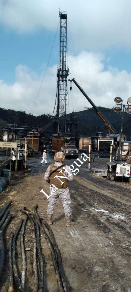 Mientras en el perímetro de seguridad, acordonaron personal de Salvaguarda de PEMEX, SSP, Guardia Nacional y SEDENA así como Protección Civil Municipal para evitar, que personas ajenas, ingresarán a la zona del siniestro.