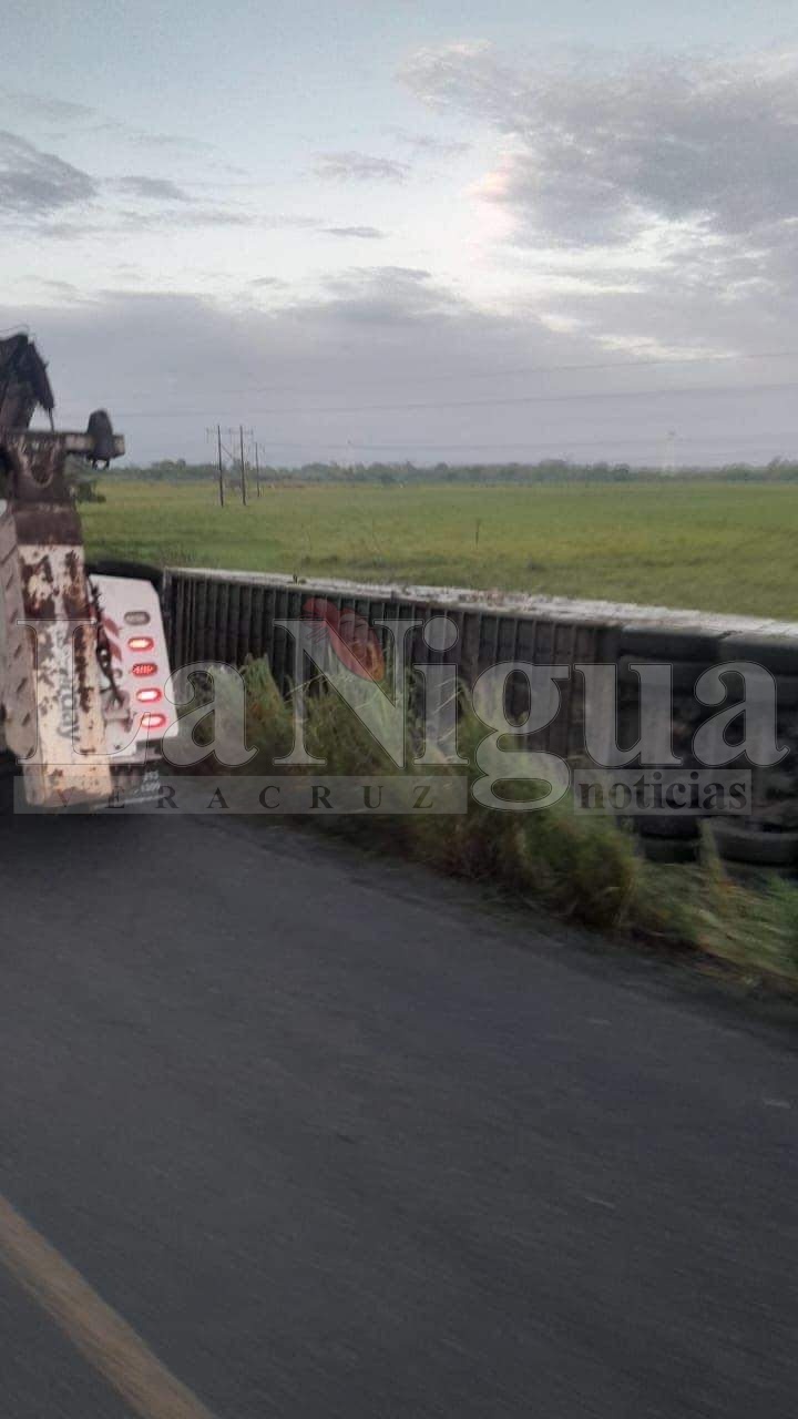 La mañana de este jueves, se registró un fuerte accidente en carretera Huimanguillo-Chontalpa, a la altura de la ranchería Nueva Tierra Primera Sección, dónde un tráiler cargado de bovinos, también conocido como “panzona”, se volcó sobre su costado derecho, quedando la unidad a un costado de la vía sobre un terreno de pantanos.