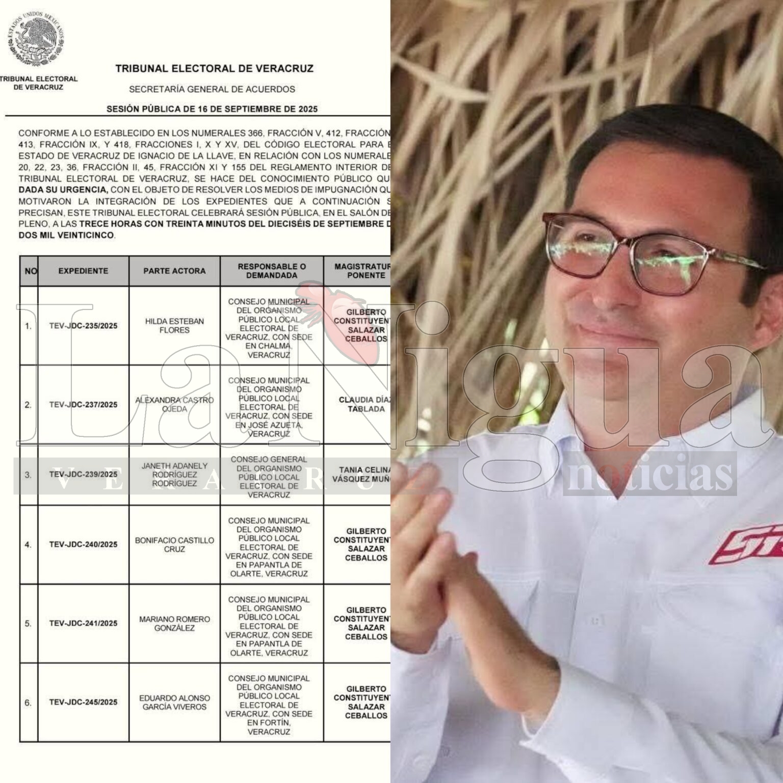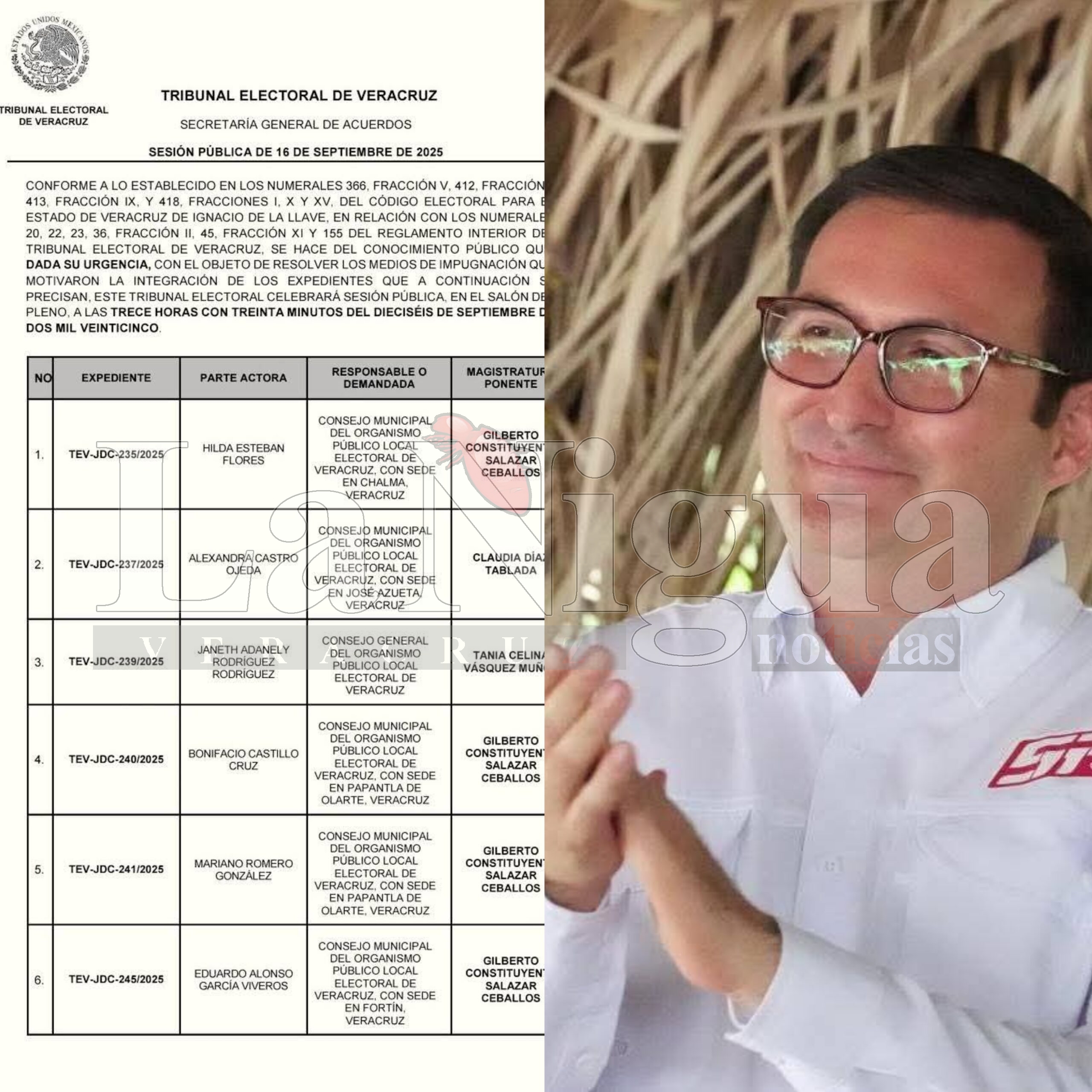 PAPANTLA, VER.-(Septiembre 16 del 2025) En sesion extraordinaria por parte del Tribunal Electoral del Estado de Veracruz; se resolvieron los juicios ciudadanos y recursos de inconformidad promovidos por los ex alcaldes y candidatos Bonifacio Castillo Cruz del Partido del Trabajo y Mariano Romero González de Movimiento Ciudadano en la pasada contienda del 01 de Junio del presente año.