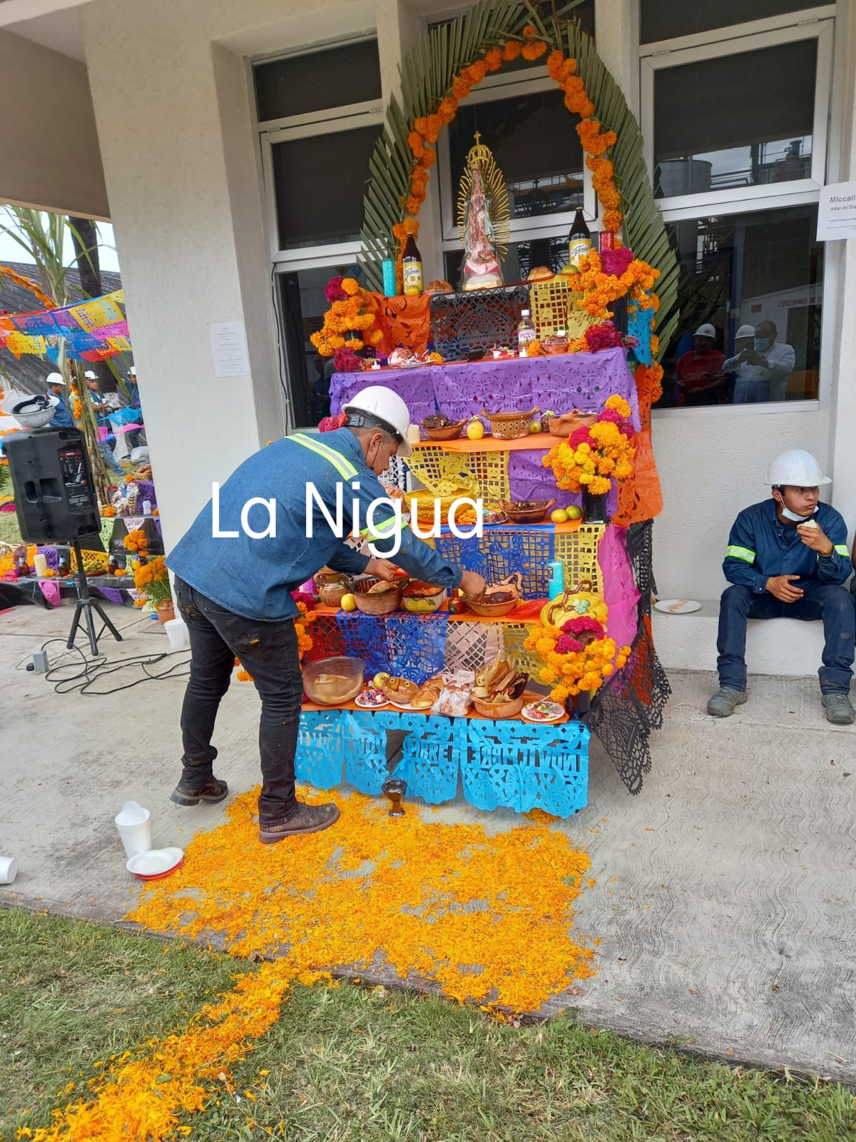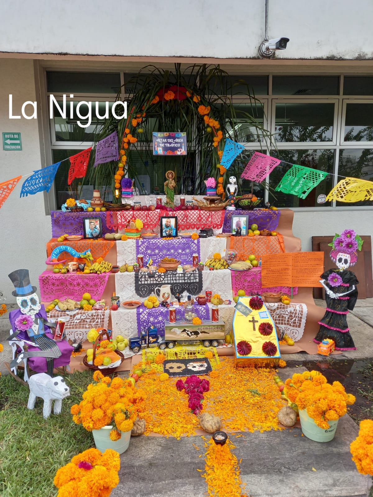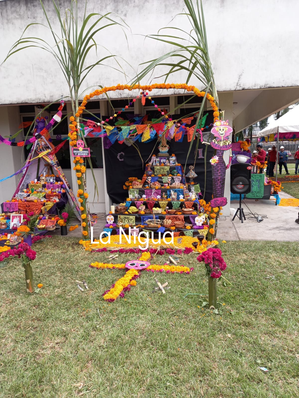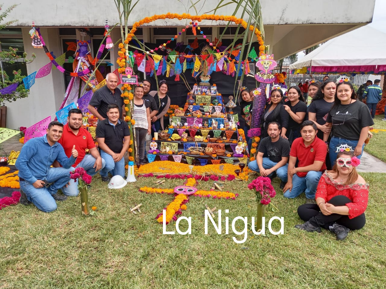 Ocho Altares participaron de todas las áreas de trabajo, poniendo muchos detalles en cada muestra, mole, tamales rancheros y de totomoxtle, tejocote, chocolate, sin faltar juguetes artesanales, aguardiente, cervezas, cigarros, las fotos de 10 personas fallecidas de la empresa.